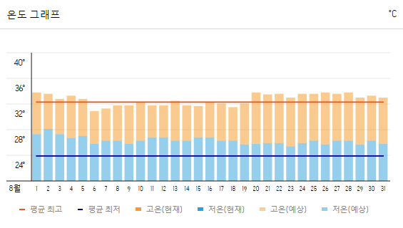 - 최고 기온: 32도 ~ 35도